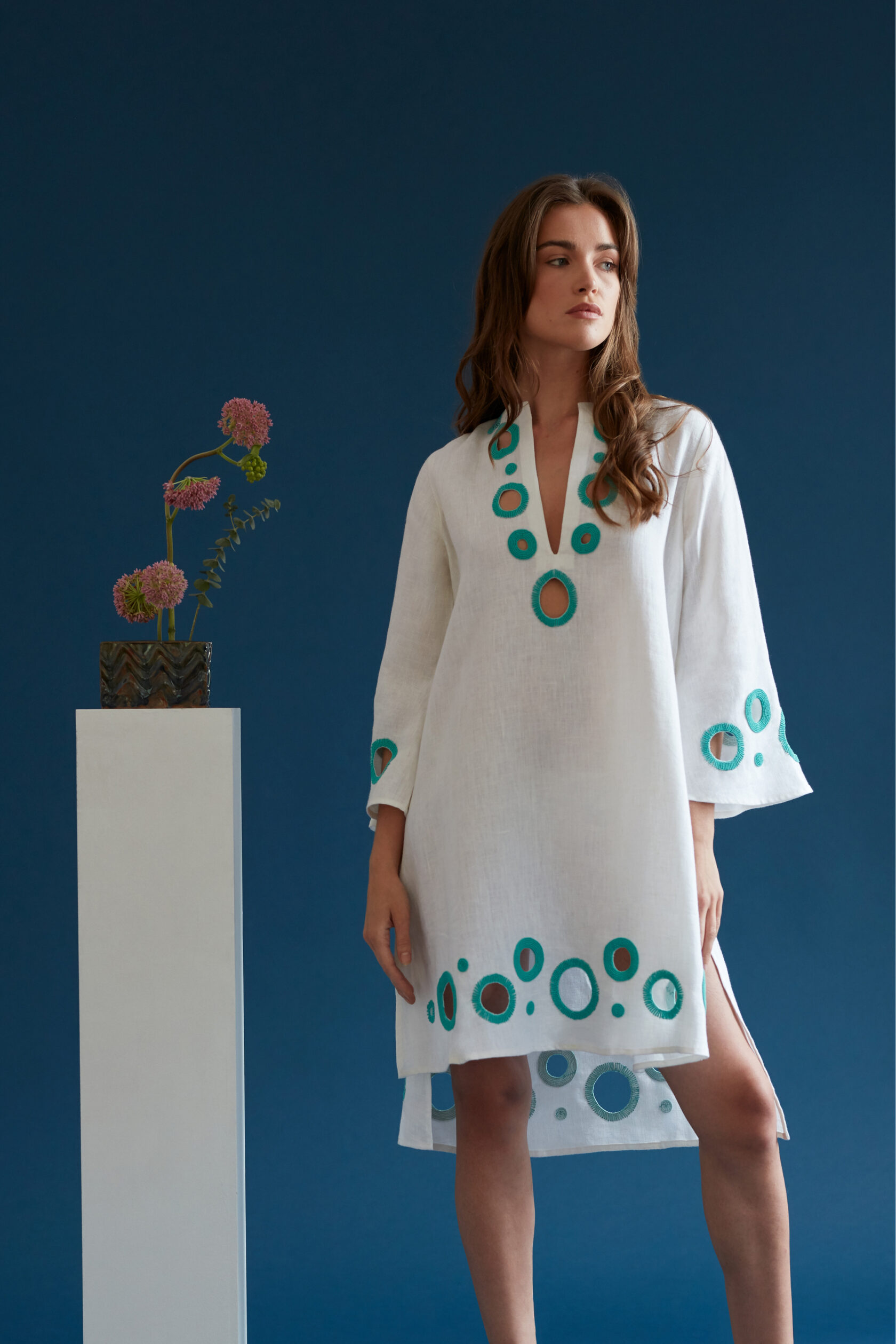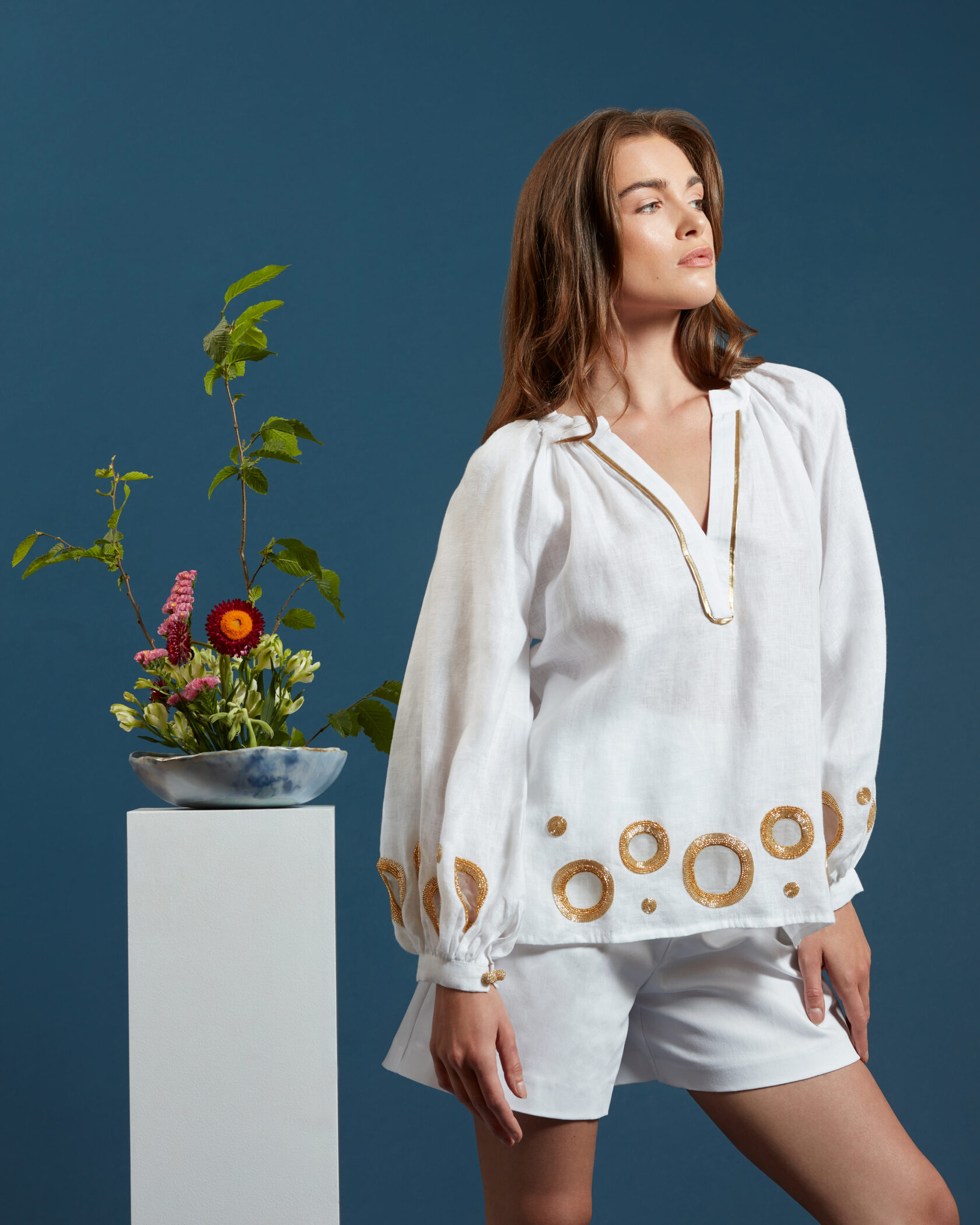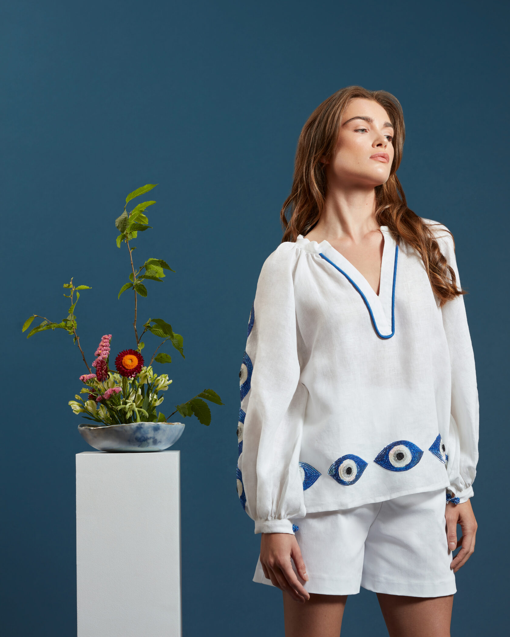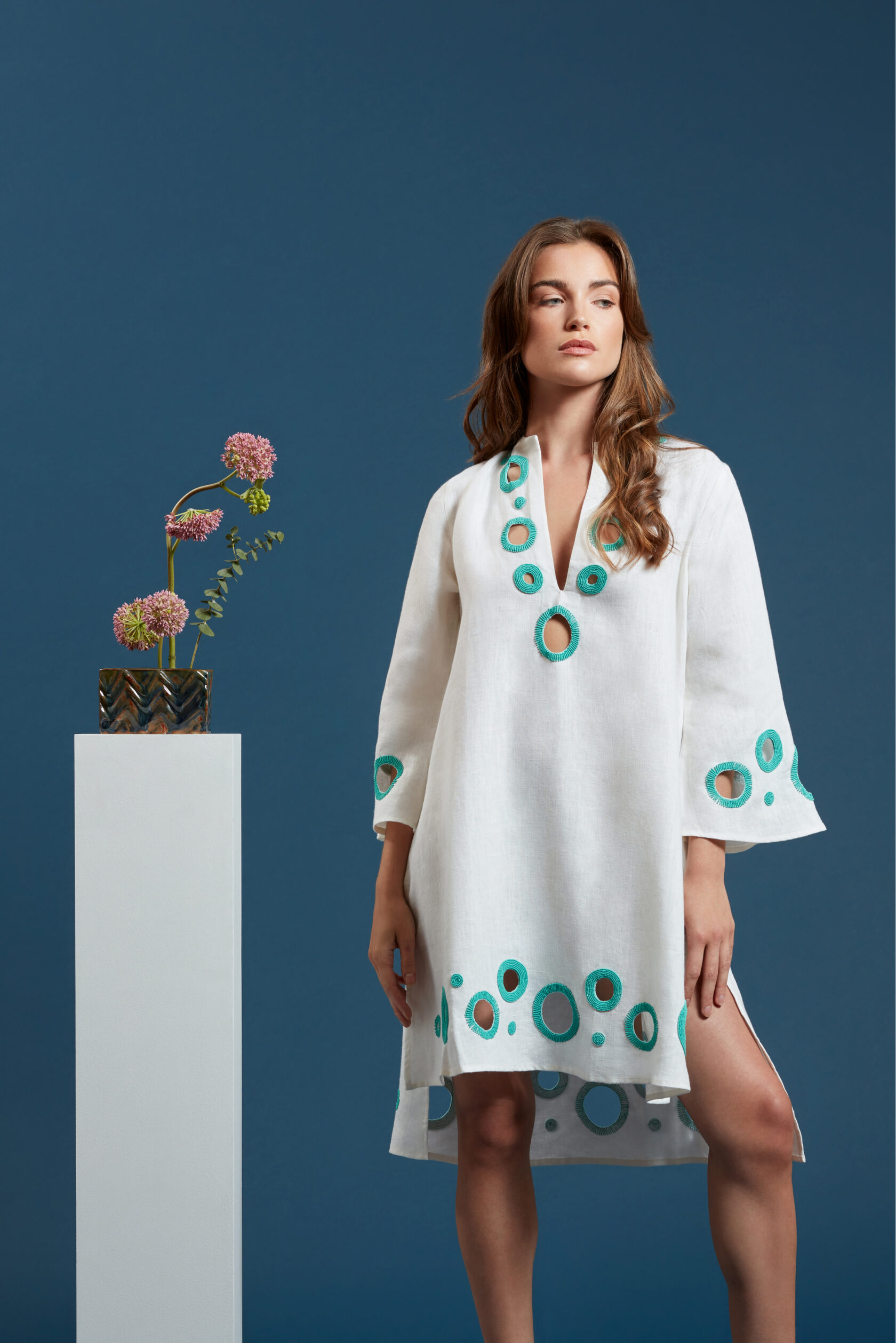 In this collection, you’ll find relaxed silhouettes, airy dresses, and statement motifs, creating a line of covetable luxury that transcends the beach and extends into everyday life.