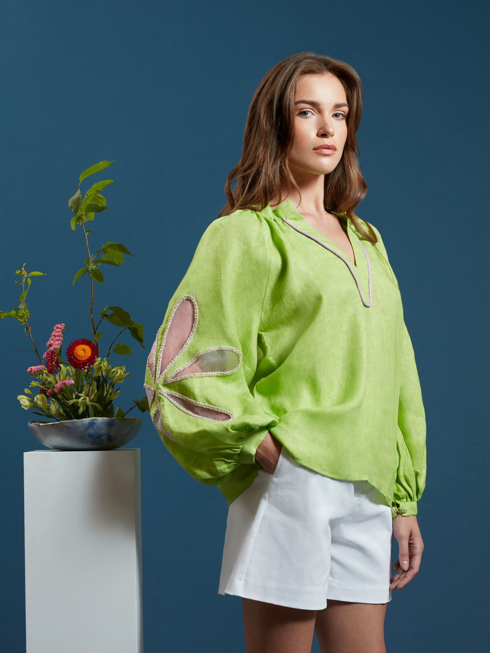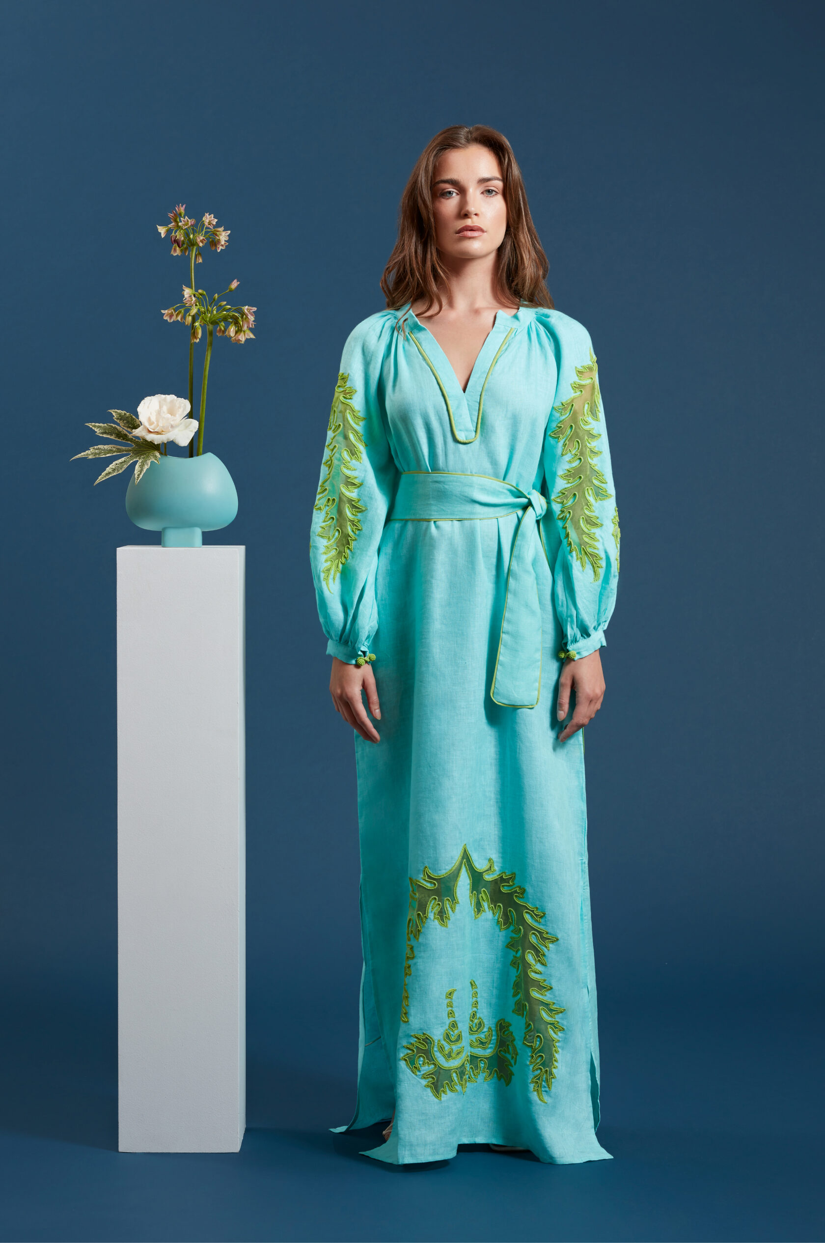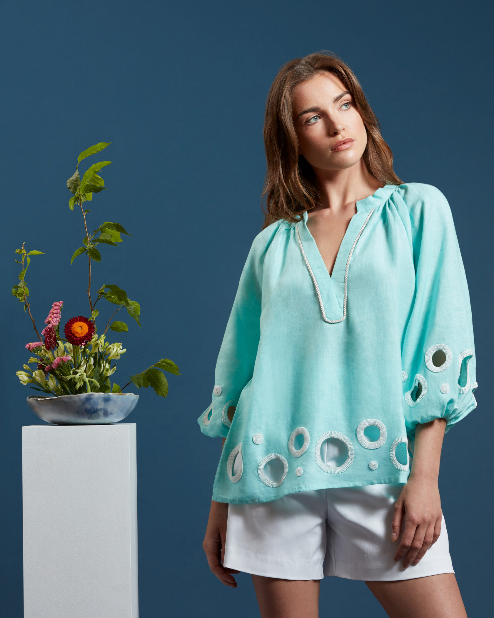 delicious sorbet hues create the perfect backdrop for Luna e Sole's signature hand embroidery. Palm leaves, daisies, and Foo Foo Tigers come alive with stunning detail, crafting an irresistible lineup of effortless femininity, empowering elegance, and sun-soaked romantic looks.